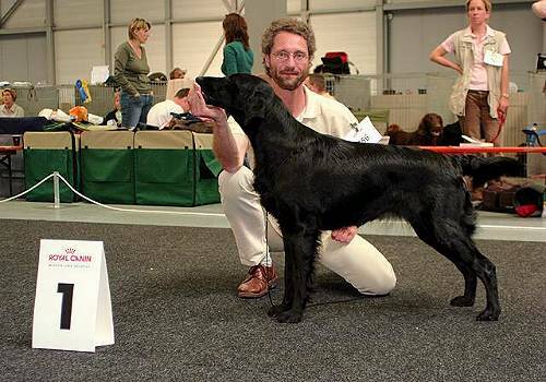 04.10.2009, NÖ-Trophy Katzelsdorf, Richterin: C. Coode (GB): 3,5 years old black bitch, good outline, excellent head, very nice neck and lay of shoulder, upperarm could have a little more angulation, very good trough the ribs with length spring and depth, the loin and the topline are strong, she has good tailset and uses her tail well, very good rear quarters, good muzzle, low hook, good coat, a fraction more strengh of bone, feet well. V1, CACA, Best Gundog In Show
