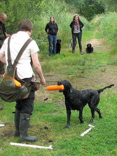 mit Carsten Schröder Seite 1 An dem Wochenende des 10. und 11. August 2013 haben wir wieder einmal ein Dummy-Seminar mit dem Schwerpunkt auf der Wasserarbeit organisiert. Das Seminar war für unsere G-chen und H-chen bestimmt, zusätzlicher Gast war Dirk mit Pearl. Leider konnte Julia mit WW Handsome Liam kurzfristig nicht teilnehmen, schade! Nebenbei wurden auch unsere Caya, Whisper, Losty und Martinas Emmy durch Apporte oder Freie Verlorensuchen im Schilf beschäftigt. WW Good News Avid WW Gentle Embrace und Anna